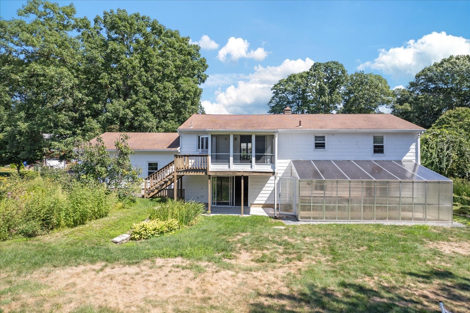 Situated on a corner lot in lovely Cowesett, this 4 bedroom, 2 bathroom home awaits your updates and style. Home is currently set up for a potential in-law apartment on the lower level, with 1 bedroom, laundry, full bath and living room which includes a brick fireplace and a sliding glass door onto a walk out patio. The Upper level has beautiful hardwood floors throughout. The kitchen has granite countertops, vintage cabinets in excellent condition and a sliding glass door which leads to a small screened in porch just off the dining area. The living room is bright with a Bay window. Included are 3 more bedrooms and another full bathroom. While the house is dated, it includes some wonderful additions Central Air, Generator, sprinkler system, heated 2 car garage and a newly built greenhouse completely set up with heat and water. Mature plantings in the front yard and a small garden in the backyard filled with butterfly loving plants. Come visit us at the Open House, and imagine the possibilities!
